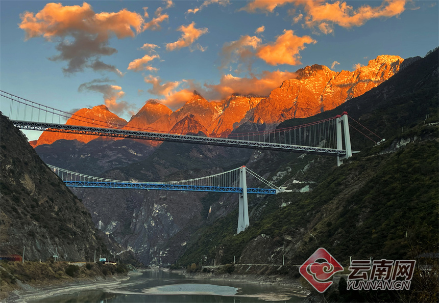 Jinsha River's 'Canyon Double Rainbow'at sunset, showcasing the magnificent landscape.