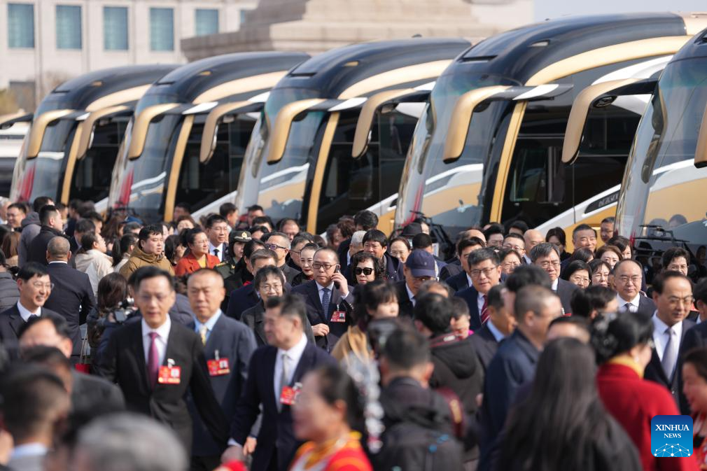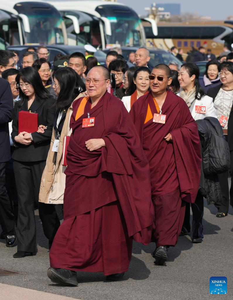 Members of the 14th National Committee of the Chinese People's Political Consultative Conference (CPPCC) walk towards the Great Hall of the People for the opening meeting of the third session of the 14th CPPCC National Committee in Beijing, capital of China, March 4, 2025.
