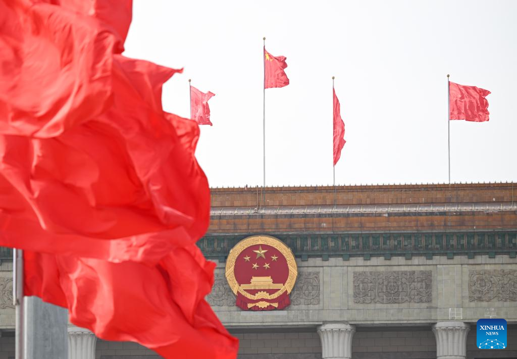 This photo taken on March 4, 2025 shows the Great Hall of the People in Beijing, capital of China. The third session of the 14th National Committee of the Chinese People's Political Consultative Conference (CPPCC) will hold its opening meeting here Tuesday afternoon. (Xinhua/Jin Liangkuai)