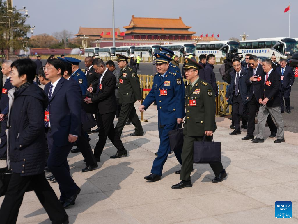 Members of the 14th National Committee of the Chinese People's Political Consultative Conference (CPPCC) walk towards the Great Hall of the People for the opening meeting of the third session of the 14th CPPCC National Committee in Beijing, capital of China, March 4, 2025. (Xinhua/Jin Liangkuai)