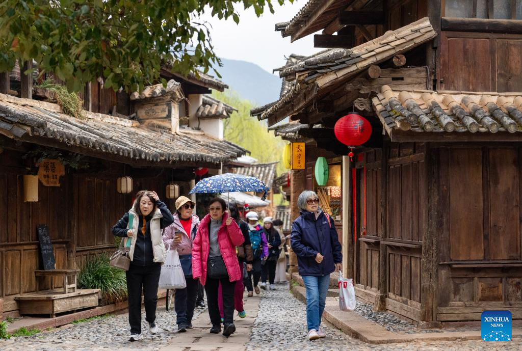 Tourists visit Shaxi Town in Jianchuan County, southwest China's Yunnan Province, March 17, 2025. Shaxi, a remote township in Jianchuan County, was once an important trading hub for tea, herbs, silk and salt on the ancient Tea Horse Road, a trade route dating back to the Tang Dynasty (618-907).