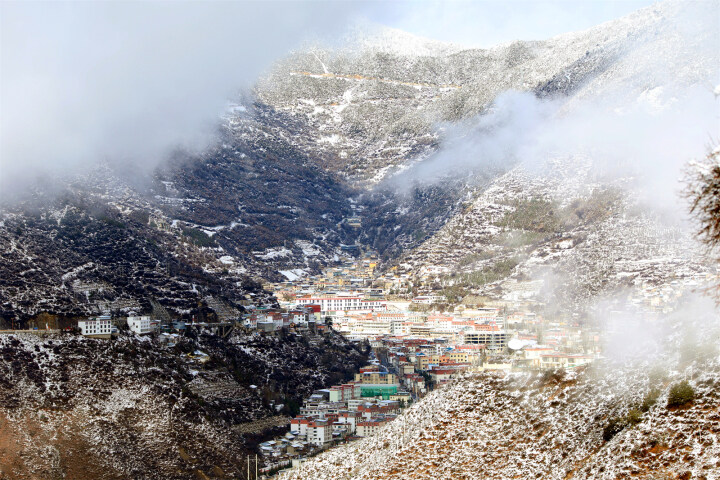 Yubeng Village in Winter Snow. It resembles a secluded fairyland